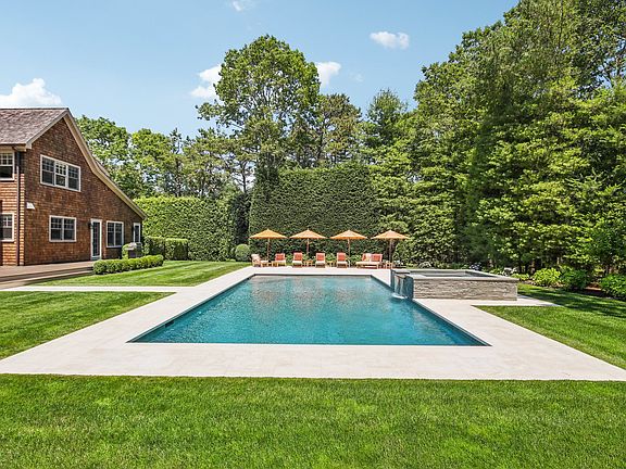 This exceptionally well-maintained home, lovingly owned by a single family since it was built, radiates a traditional Hamptons charm. The semi-circular driveway and slightly elevated position enhance its curb appeal, showcasing lovely masonry and an elegant entryway. Inside, the house transitions to a more post-modern aesthetic with high ceilings and bright, airy interiors. The expansive living room leads to a cozy den, while a formal dining room connects the living room and kitchen. The kitchen includes a casual dining area, a nearby laundry room, and a full bath accessible from the deck and pool area. The first floor also features a bedroom with an en-suite bath, an additional powder room, and an attached two-car garage for easy grocery transfer. Upstairs, the primary suite boasts a private entrance room, a large bathroom with double sinks, a fireplace, and a spacious walk-in closet. The three additional bedrooms each have their own unique style and en-suite bathrooms. The owners have carefully selected the tiles and colors, and the house has seen light use as they reside on the West Coast most of the year. In 2017, the lower level was completed to the highest standards, adding 1,925 square feet to the existing 4,077, bringing the total to over 6,000 square feet. This level includes another bedroom, a full bath, a gym, a media room with a work-from-home annex, a stunning glass wine cellar, and another powder room. Each floor features its own heating and air conditioning zones, totaling seven. Additional features include a new water purification and softening system and a Sonos sound system controlling both indoor and outdoor areas. In 2020, the pool was renovated by the respected company Tortorella Pools, including new equipment, resurfacing, and replacement of the surrounding hardscape. The heated, gunite 40x20 pool and spa area, as well as the patio, were updated. Recent upgrades also include a new mahogany deck, a replaced wood shingle roof, and updated central air conditioning systems. Situated on 1.37 acres in The Ranger Estates with community tennis, this home is minutes from East Hampton Village and a short drive to Three Mile Harbor, perfect for paddle boarding and sunset walks. Lovingly cared for, this home can be available fully furnished, ready for immediate enjoyment. A visit is essential to truly appreciate all it has to offer.