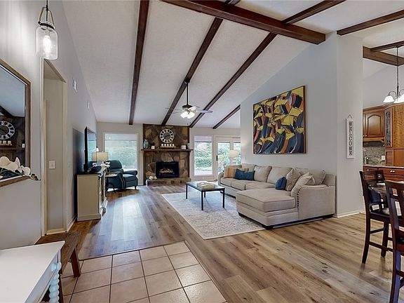 - Exterior features: Architecture Style: Ranch Rambler, Attached, City Lot, Electric Water Heater, Family Room, Fireplace, Garage Door Opener, Heating system: Central, Heating: Gas, In Ground, Laundry Room, Lot Features: City Lot, Public Road, Main Level Primary, Masonry, Primary Suite, Public Road, Pull Down Attic Stairs, Roof Type: Composition, Some Electric Appliances, Standard Block, Vaulted Ceiling(s), Wood Burning