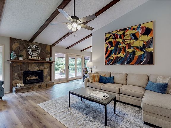 - Exterior features: Architecture Style: Ranch Rambler, Attached, City Lot, Electric Water Heater, Family Room, Fireplace, Garage Door Opener, Heating system: Central, Heating: Gas, In Ground, Laundry Room, Lot Features: City Lot, Main Level Primary, Masonry, Primary Suite, Pull Down Attic Stairs, Roof Type: Composition, Some Electric Appliances, Standard Block, Vaulted Ceiling(s), Wood Burning Stove