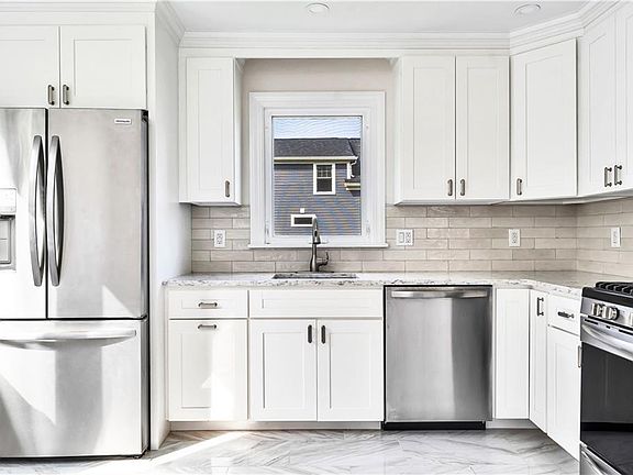 Completely renovated home in beautiful Bristol, RI! Walk into the bright open concept kitchen with crown moldings, quartz countertops, sparkling new stainless steel appliances and a pleasing palette of colors! There is a half bath conveniently located on the first floor, a generous sized living and a first floor bedroom. Walk downstairs to a wonderfully bright finished lower level, perfect for an entertainment room, playroom or home office space. Venture up the beautiful hardwood staircase to the second floor and there are two more additional bedrooms and a beautiful full bath. Everything is fresh and new including the roof, heating system and water heater, vinyl siding and windows, plumbing, and electric. Nice 5550 sqft corner lot. Move in ready and close proximity to the waterfront of Bristol Harbor, shopping and dining.