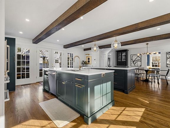 - Features: Beamed Ceilings, Closet/Cabinets - Custom Built, Flooring - Hardwood, Countertops - Stone/Granite/Solid, French Doors, Kitchen Island, Stainless Steel Appliances, Storage
