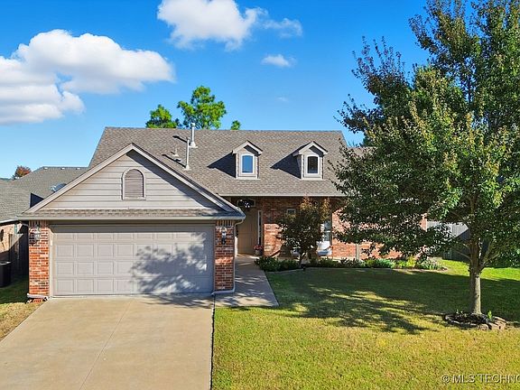 Welcome home to this beautifully maintained Craftsman in the friendly Windsong Meadows neighborhood! This 3-bedroom, 2-bath home offers an open, light-filled layout with gorgeous flooring, a corner fireplace, and a wall of windows overlooking the backyard. The kitchen is a standout with granite countertops, stainless appliances, a pantry, and a sunny breakfast nook—perfect for morning coffee. The primary suite features a vaulted ceiling and a spa-like bath with double sinks, granite, a whirlpool tub, and a separate shower. A split floor plan provides privacy for the secondary bedrooms and hall bath. Outside, enjoy a well-kept yard, inviting patio, and tidy landscaping. The home also includes a storm shelter in the garage and a storage shed that stays. Situated in a great location with easy Hwy 75 access, you’re just minutes from Glenpool, Tulsa Hills, and Bixby amenities—shopping, dining, and everyday convenience all nearby!