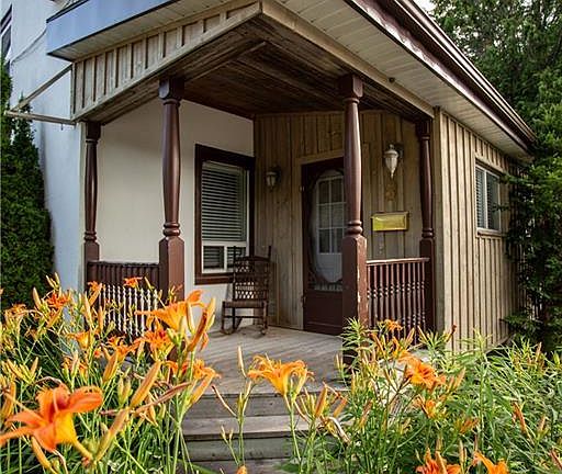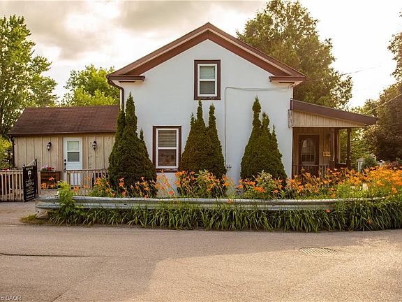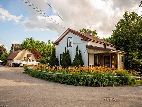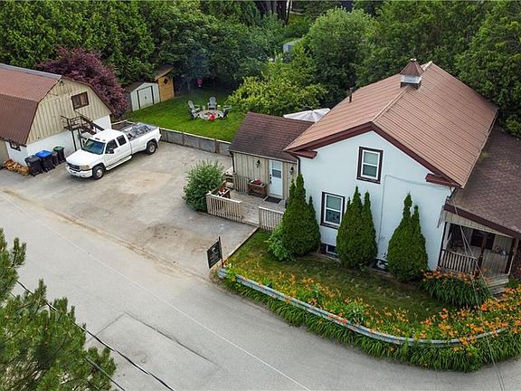 ONE OF A KIND BEAUTY. Great location, close to Hwy 400, schools, a library, recreation center, park/outdoor water park, restaurants, outlet mall and local shops. Backyard serenity with three spacious decks surrounding the home, complemented by a fre pit and hot tub. Great for entertaining including ample parking space. Backyard is landscaped beautifully with mature cedars, Japanese maple and centered with a unique pear tree and includes a spacious outdoor shed and fre wood/garden shelter, offering much needed space for storage of any outdoor landscaping/garden tools, frewood etc. 1 1/2 story home with upgraded wiring, insulation, air conditioning and central vac. Main foor has a beautifully renovated kitchen with all upgraded modern appliances, a four piece bathroom, refnished original fooring throughout the main foor and ample storage space. Second foor includes three bedrooms and a three piece bathroom. Renovated workshop with an overlooking loft including two separate entrances, air conditioning and a pellet stove. Dream come true for a hobby enthusiast.