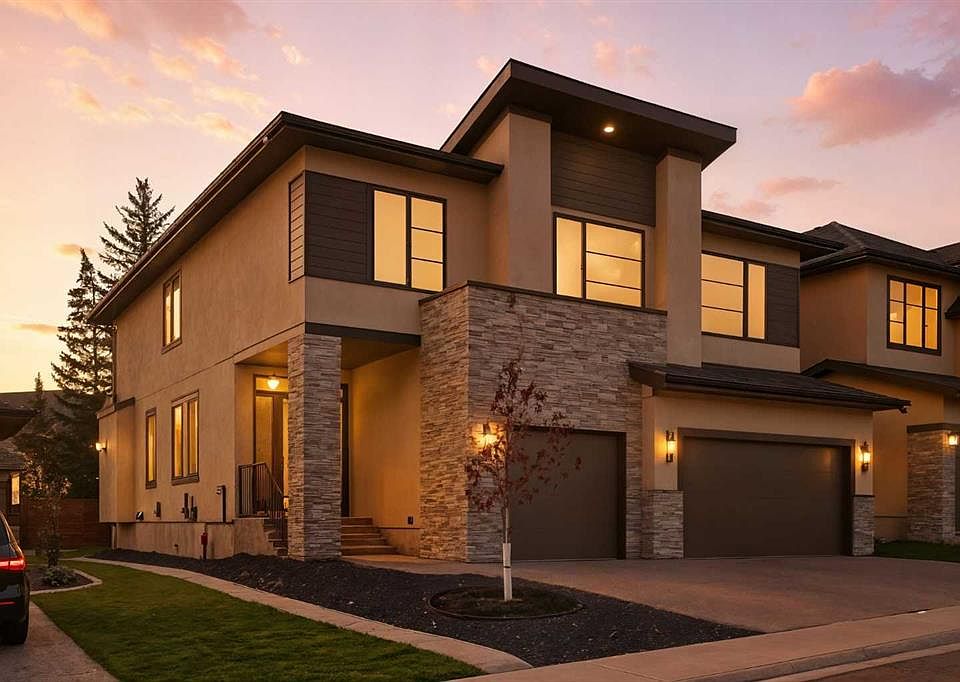 A masterfully built residence in the prestigious enclave of Mystic Ridge, this nearly 5,000 sq. ft. estate exemplifies modern luxury, exceptional craftsmanship, and timeless design. The striking exterior, finished in acrylic stucco with rich stone accents, opens into an interior defined by soaring ceilings, expansive windows, wide-plank engineered hardwood flooring, and bespoke finishings throughout. With 3,608 sq. ft. above grade plus an additional 1,391 sq. ft. in the lower level awaiting your vision, this home offers both sophistication and future opportunity. At the heart of the main level lies a chef-inspired kitchen, appointed with custom cabinetry, quartz surfaces, a full-height quartz backsplash, and professional-grade appliances including a Dacor 48-inch double oven gas range and built-in, panel ready refrigerator and dishwasher. A central island anchors the open floorplan, seamlessly connecting to the dining area and great room with sleek gas fireplace. A private office, custom mudroom with built-ins, and walk-through pantry hall complete the main floor. Upstairs, retreat to the owner’s sanctuary with dramatic windows, a spacious walk-in dressing room closet, and a spa-calibre ensuite featuring a freestanding soaker tub, double vanities, and a glass-enclosed shower. Three additional bedrooms, each with its own private ensuite, are joined by a convenient upper-level laundry complete with cabinetry and sink. The triple attached garage with polyaspartic coated flooring and side-mount openers offers ample space and functionality, while the fully landscaped backyard with patio provides an inviting space to relax and entertain. Set within Springbank Hill’s exclusive Mystic Ridge, residents enjoy serene walking paths, lush natural reserves, and proximity to top-tier schools including Webber Academy, Rundle College, and Calgary Academy. Aspen Landing and West 85th deliver premier shopping and dining, while downtown Calgary is just 20 minutes away. Experience an uncompromising lifestyle in one of Calgary’s most distinguished communities. Schedule a showing with your favorite luxury Realtor® today!
