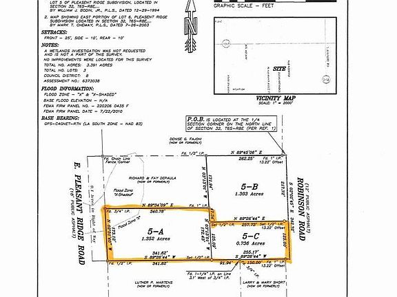 Beautiful 1.352 Acre Wooded Lot in Hammond, LA. This lot is located in Flood Zone "X". Come and build your dream home here. Located conveniently to Interstate 12 and Downtown Hammond. Lot 5-C is also available for sale and fronts on Robinson Road.