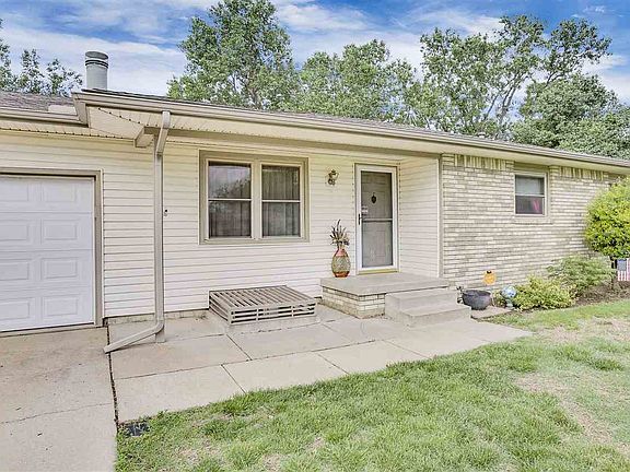 GODDARD SCHOOLS!!! Great 5 bedroom home just waiting for you. No specials, and in the Goddard School district. With a wood burning fireplace, fully fenced in yard, and easy access to Kellogg this home will be perfect for you. You will love the updated bedrooms, bath and rec room in the basement. Lots of storage in the basement and two small sheds out back. Enjoy your evenings on the covered patio area and all the mature trees the area has to offer. The updated windows help with the HVAC costs. Vinyl siding keeps a lot of the outside maintenance free. Close to schools, parks, the pool and a splash pad. Come see it today.