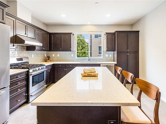 Welcome to this modern townhome located in the gated Goldwyn Community. Built in 2015, this immaculate property is in turnkey condition and is almost like new. The first level has an attached direct access 2-car garage as well as a guest bedroom with an en-suite restroom ideal for guests or extra rental income. The 2nd floor has a modern open floor plan with a spacious kitchen, dining and living room areas all rolled into one great room. The kitchen boasts a large center island with bar seating, crisp countertops, an abundance of storage space, tiled backsplash, and Bosch appliances. Next to the kitchen you will find a dedicated laundry room large enough for side by side setups and a guest restroom. The third level contains the master bedroom with dual vanities and a spacious walk-in closet. Exiting the master bedroom, you will find a built-in desk area in the hallway, ideal for those who work from home. Across the hall is the third bedroom with its own full restroom. Other property amenities include recessed lighting throughout, Hunter Douglas motorized blinds, tankless water heater, and 220v charging options. The Goldwyn Community features a beautiful greenbelt area, playground, and BBQ area. Conveniently located by the 60 and 605 freeways, this is a commuter's paradise.