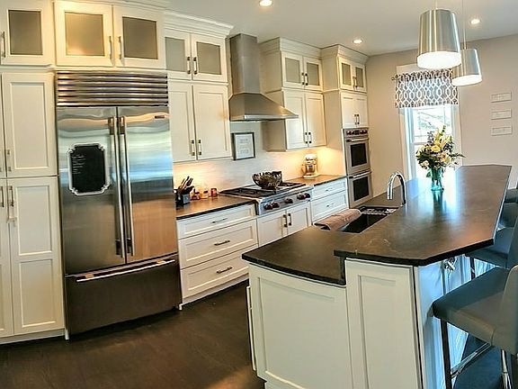 - Kit Dscrp: Flooring - Hardwood, Countertops - Stone/Granite/Solid, Breakfast Bar / Nook, Kitchen Island, Recessed Lighting
