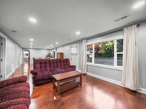 Welcome to 5 Edgewood Rd, where modern style, comfort, and quiet suburban living come together. This thoughtfully updated ranch features a bright, open layout with recessed dimmable lighting and a beautifully renovated granite kitchen updated within the past three years. The kitchen flows smoothly into the main living area, creating a warm, cohesive space ideal for entertaining or relaxing at home. Step outside to your newer Trex deck, the perfect spot for morning coffee or evening gatherings. From here, enjoy peaceful views of the natural wetlands behind the property, offering rare privacy and a scenic backdrop throughout the seasons. Additional highlights include brand-new central air for year-round comfort, a convenient pull-down attic with abundant storage, and the ease of single-level, low-maintenance living in a quiet, welcoming neighborhood. Discover the ideal blend of modern updates, everyday convenience, and serene surroundings.