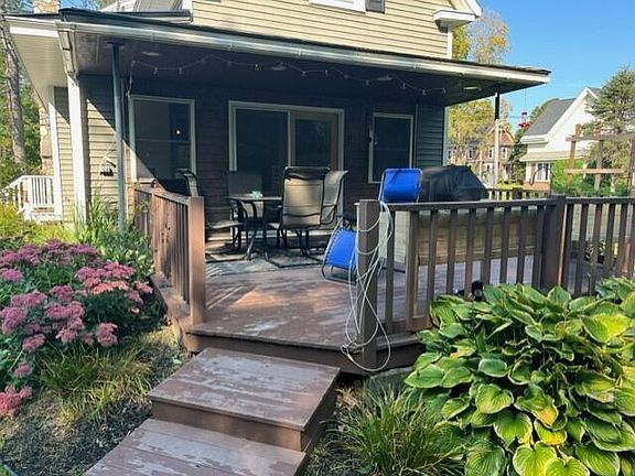Beautiful New England style home built in 1890 and located on a quiet street surrounded by similar historic homes. Southern exposure provides plenty of natural light and passive solar heat. Enter this well loved home from an enclosed porch/mudroom. At the rear of the home is a family room with a Harmon pellet stove and access to a private back deck. The modern eat in kitchen has ample cupboards and will convey with all appliances. This has a formal dining room, spacious living room with a newer Jotul wood stove insert and new oak floors throughout the downstairs hall and family room. There's also a newly remodeled half bath and laundry on the main level. The 2nd floor has 3 bedrooms and an office or exercise room and a new bathroom with a walk-in tiled shower. The full basement has an interior as well as bulkhead entrance which makes it convenient for storage. The home is primarily heated with an oil boiler with pellet and wood backup. Imagine a .74 acre, beautifully landscaped lot with a garden shed, detached 2 car garage and paved driveway. This lovely home must be seen to be appreciated.