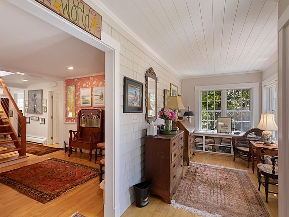 Hidden gem in Biddeford Pool! This lovely home sits on just over half an acre on a dead end road just steps from the beach. Surrounded by beautiful gardens and mature landscaping, it's a private oasis with pond and ocean views. The first floor offers a formal dining room, den, open concept living room and eat-in kitchen, two ensuite bedrooms and baths plus an office that could be a bedroom. Porches, built-ins, a wood stove and fireplace round out this thoughtfully designed space. Upstairs is another spacious bedroom with balcony windows that bring the outside in, plus another charming bedroom and a hall bath. This house is crowned with a roof deck that offers spectacular views. Outfitted with modern amenity upgrades, this property features heated flagstone front steps and walkway, a whole house generator, a mini-split for heat and A/C, a brand new downdraft range, electric awning to shade the porch, outdoor shower, irrigation system, Nest thermostats and more!