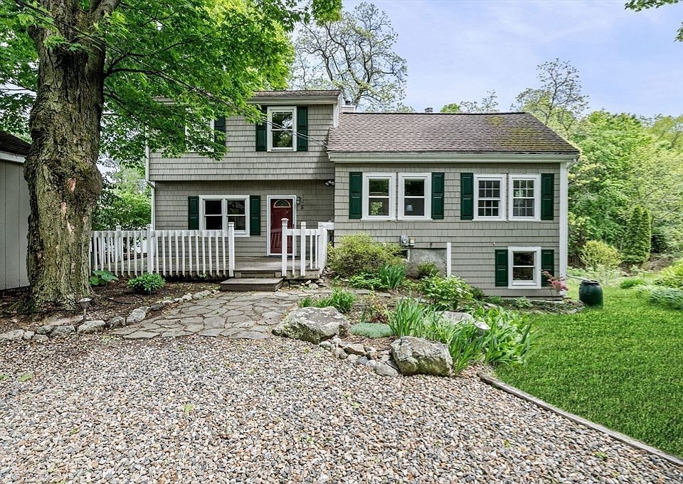 OPEN HOUSE SAT/SUN> Charming Colonial on a quiet cul-de-sac w/ 3 BR/ 2 full bathrooms & hardwood floors. Bright kitchen w/ wood beams & stainless appliances– Brand new stove & dishwasher; Natural wood cabinetry. Formal dining room & a separate laundry room. Spacious & well lit living room with cozy wood stove, expansive deck. First floor bedroom. Upstairs you'll find 2 spacious bedrooms & a full bathroom. Lovingly maintained & offering thoughtful features inside & out, including a basement workshop & additional storage. The pea stone driveway & perennial landscaping create exceptional curb appeal while the large backyard & deck offer peaceful outdoor living overlooking lush grounds w/ lily pond & mature trees. Perfect blend of privacy, comfort & location. A truly inviting property with timeless charm & tranquil surroundings. Move-in ready home ready for your personal touches. Solar panels owned & substantially offset electric bill. There is currently a credit (bill available upon req.)