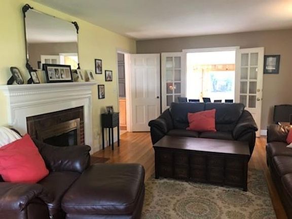 Stunning cape style home on a great lot! This 3 bedroom, 2 bathroom home offers hardwood floors throughout, eat-in kitchen, and first floor laundry. Formal dining room and open concept kitchen feature chair rail and wood cabinets. A spacious living room features a fireplace, perfect for cozy New England nights. French doors lead you out pack to an enclosed porch which can be enjoyed for 3 seasons. Patio and large, level lot offer space for BBQ's and other gatherings. Other features include: ceiling fans, pendant lighting, and large unfinished basement! Close to restaurants, shopping, highways, and schools. You can't miss this one!