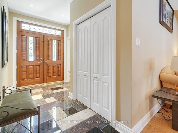 This grand Royal Edward II model offers over 3,100 sq. ft. on the main level, plus an additional 1,000 sq. ft. on the lower level. The main floor features generous living spaces, including a private office, a formal living room, a spacious dining room, a cozy family room, and a bright sunroom. The modern open-concept kitchen boasts a large eat-in area and an island with seating, perfect for entertaining family and friends. The lower level is designed for both relaxation and recreation, offering a full bathroom, a guest bedroom, a large rec room, a gym area, and a private cinema room for movie nights with loved ones. The level is finished with elegant engineered flooring, while the main floor showcases rich hardwood throughout. Upstairs, comfortable carpeting provides a warm and inviting atmosphere. Step outside to a professionally landscaped backyard featuring a grand sitting area, ideal for both relaxation and entertaining. This home truly has it all, a rare opportunity not to be missed. The sale price includes Cinema furnishings.