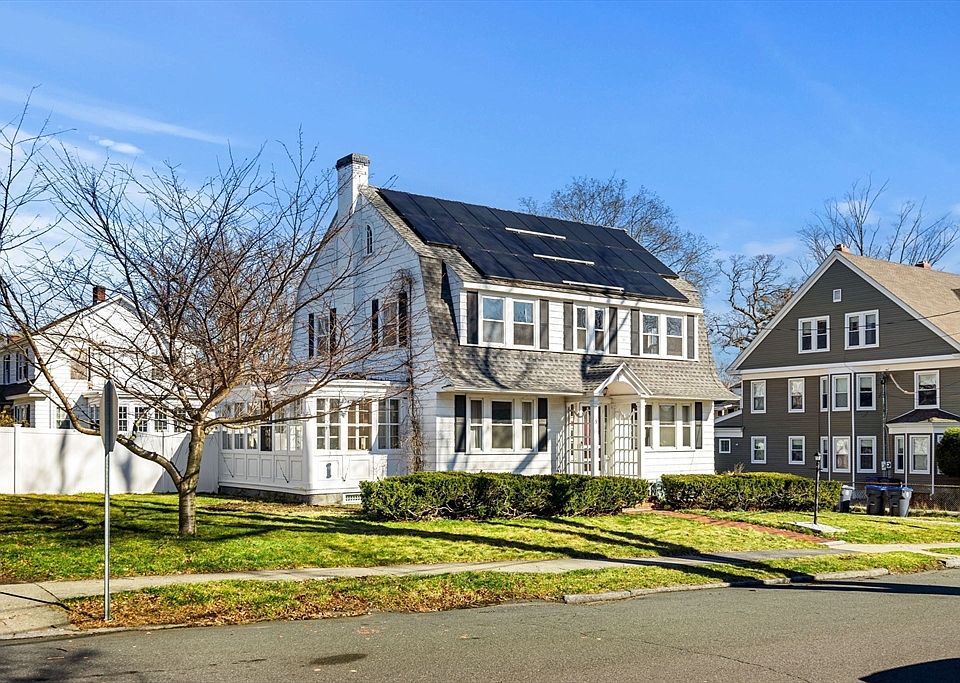 Welcome to this beautiful 4-5 Bedroom Home on a tree-lined side street in a great neighborhood! As you step into the oversized entry foyer in this magnificent home, you'll notice the elegant staircase and the natural light illuminating the hardwood floors, which were all just redone. The first floor offers Living Room, Dining Room, Kitchen, Sunroom and half bath. Four bedrooms and a full bath are on the 2nd floor. And there's a 3rd floor walkup WOW BONUS area brimming with potential - large enough for an inlaw or primary suite, studio, etc. So much charm and character throughout the home with built-ins, larger than expected closets, high ceilings, and a hint of grandeur from the past. Additional amenities include the fully fenced yard, 2 car garage, full unfinished basement for storage, and solar panels for efficiency. Recent improvements include NEW: interior paint on 1st & 2nd floors, Electric, garage door, lighting fixtures, hardwood floors refinished, back stairs, and more!