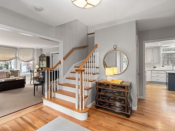 This meticulously maintained colonial stands out in a coveted neighborhood with a half-acre professionally landscaped grounds,close to downtown and schools, hardwood floors throughout and many tasteful updates.The inviting foyer opens up into the stunning living room and dining room.This kitchen has an on-trend aesthetic-crisp white cabinetry,stainless steel appliances,new quartz countertops and backsplash elevate the space.Adjacent to the kitchen is an impressive family room, adorned with custom made built-ins,a fireplace,and sliding glass doors leading to the spacious deck.A laundry room,half bath,and office complete the first floor.On the second floor the primary suite awaits with its large en-suite bathroom and walk-in closet.Three additional bedrooms share a second full bath with new countertop. Enjoy more entertaining space on the lower level which includes a full bathroom.Two-car garage is oversized with an extra half bay. The level backyard is a perfect size for entertaining.