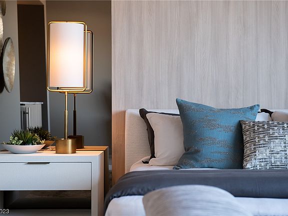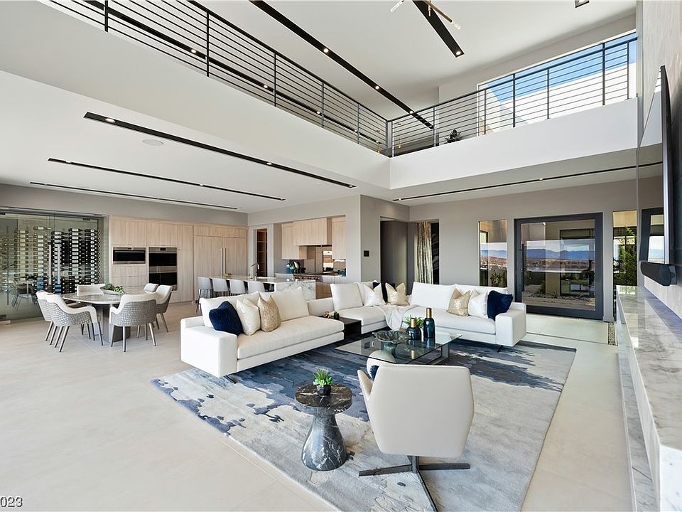 Located on Lake Las Vegas’ North Shore, Blue Heron’s Caliza Show Home offers an exceptional lakefront lifestyle. Dynamic elevated lake views take centerstage throughout the 6,114 square feet of desert modern designed interior. The two-story home features voluminous ceilings, a striking linear gas fireplace, seamless indoor/outdoor living, 4 bedrooms, 4 baths, a 4-car garage, and an upper-level loft/game room with a bar. The sophisticated kitchen boasts a central waterfall island, custom cabinetry, a walk-in pantry, and a temperature-controlled wine cellar. Main-level primary features a striking bath with double sinks, a walk-in shower, and a bath. The suite showcases private access to the striking exterior. Intimate conversation areas, an elevated infinity-edge heated pool, and spa create a private sanctuary with breathtaking views of the lake and surrounding landscape. The gated property is close to incredible hiking and biking trails, championship golf, and outdoor dining.