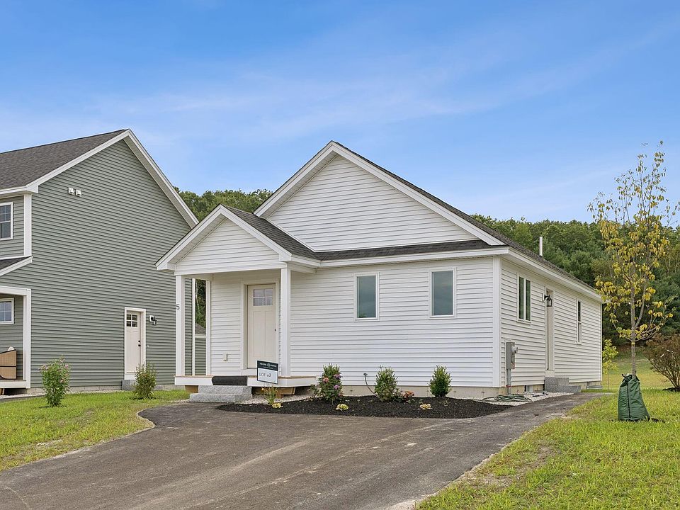 Move in ready! This thoughtfully designed single-level home balances ease and comfort. With an open-concept kitchen, living area at its core, this plan offers an easy flow and flexible space for everyday living. A primary bedroom with a walk-in close and direct access to the bath sits in the back of the house - with the second bedroom just off the hallway. Lots of closet space and a full basement offer plenty of storage. At Mineral Springs you will find excellent quality construction at a more accessible price, just 20 minutes from Portland. As part of the association you will have access to nature trails, a pond, a sports court, a playground and lots of open space. Mineral Springs is more than just a neighborhood—it's a place to feel grounded, connected, and at home. This is a limited opportunity for income-qualified buyers to own a new home in one of Maine's most desirable communities. Various home styles are available — reach out to learn more about qualifications and available floor plans!