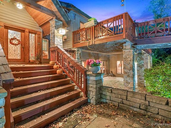 Welcome to your Country Estate! Fernwood Drive features a number of luxury estates in Barrington Hills that boast privacy and luxury. Driving up to this property you will be amazed by its grand presence and one of kind architectural design that includes a catwalk to a four season lookout tower-gazebo. New composite decking just installed on entire front of home including the catwalk. The master suite is a private sanctuary located on a separate wing of the home while featuring a wet bar, double sided fireplace, and extremely large walk-in closet with built in dressing area. Master bath includes a full steam shower that is connected to a sauna and has been fully renovated. Throughout the home features vaulted ceilings with exposed beams everywhere. 2 additional bedrooms on first floor with full bathroom. Notice hidden bathrooms on both the main floor and lower level behind the bookcases! Full walkout basement includes two full baths, theatre area, office, workout room and separated in-law quarters with fireplace and additional bedrooms. Large space for game tables of your choice, mini kitchen! Backyard oasis features a "Spool" by Barrington pools, full irrigation system and private pond with waterfall. Enjoy your own apple orchard! Feel safe in your home with vehicle sensor alarm at the front of your long driveway entrance. Reach out to Kevin or Dana for additional information and questions.