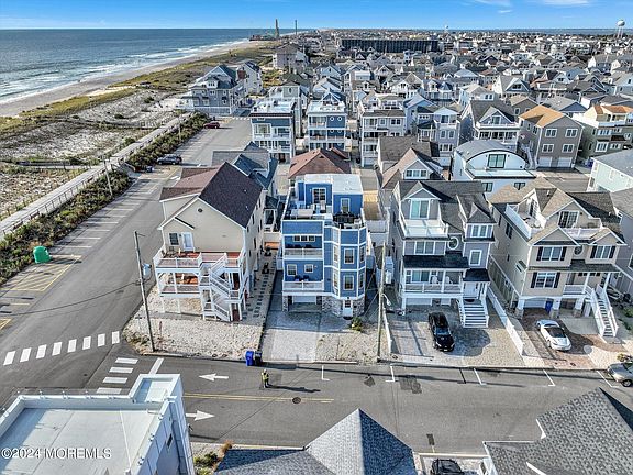 FULLY FURNISHED, WINTER RENTAL AT $5,000/MTH. Oct 1 - May 31 2026. Summer Seasonal: $4,000/WK June, $10,000/WK July & August, Sept $4K4 BR, 5 Baths. Reverse Living Concept. Newer, Roof-Top Sunning Deck w/ Hot Tub & outdoor furniture w/ ocean and beach vistas. Marble countertops in kitchen with a mosaic basket-weave stainless steel back-splash over the oven range. White maple cabinets & vanities throughout with a beautiful driftwood finished wood floor. Trey and coffered ceilings, NO SMOKING. Master suite has his & hers walk in closets. Marble-tile floors in all bathrooms with custom tile shower & tub enclosures, whirlpool corner tub. Primary -King, Princess-King, Bedroom 3 off kitchen-Queen, Top Floor Day Bed w 2 twins. Linens/towels included, 6 beach badges. Beach chairs. 2nd house in 2nd House in from beach entrance at Ortley Beach Lifeguard House with public bathrooms. Newer home with reverse living style. Paver Driveway with 2 car garage from Ground Level Entrance. Large ground level area for entertaining with door to elevator lift which stops at each floor. Door out to paver yard with picnic table, bbq, and outdoor shower for rinsing off from beach.