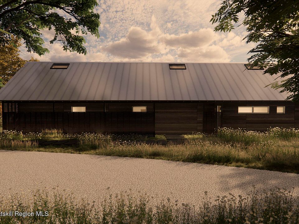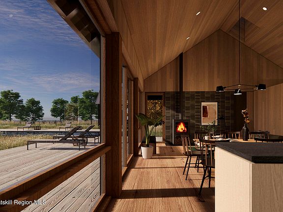 Welcome to South Hill, a modern community with luxurious homes immersed in the Catskills. Located in Ulster County, South Hill is at the forefront of a new generation of Upstate homes. Designed by the award winning architects at Mapos, each home is inspired by the dynamic landscape of South Hill and has been crafted with the utmost attention to detail while allowing you a high degree of control to make this your home. The Hudson is a 2200 square foot home designed with clean and modern finishes, natural textures, local materials, super-insulated walls and roof for low maintenance, environmental impact and energy usage. This single-story home integrates with the natural landscape and is offered on 4.61 wooded hickory and hemlock acres with seasonal mountain views which can be made year round with minimal clearing. Featuring a large and open Living/Dining/Kitchen space with soaring 17.5 ft ceilings for gatherings. Large entry area with large closet and powder room is perfect for the transition from outside to in. Two bedrooms can be found off of the corridor and across to a full bathroom and separate laundry room and mechanical space. The main bedroom and bathroom suite is placed at the opposite end of the home and opens onto the landscape. The den/flex room has a screened in porch. The home includes triple pane insulated windows, 8'white oak floors, hemlock ceilings though out, kitchen island, expanded kitchen storage, Fisher Paykel series 7 kitchen suite, wine refrigerator, built in millwork in great room, LG Ultra washer and dryer, Stuv wood burning stove, motorized skylights, matte black Kohler Purist plumbing fixtures, high efficiency ducted heating and cooling system, radiant heat floors, and a storage attic. The exterior is covered with rustic Japanese Shou Sugi siding and a standing seam metal roof with extended eaves. Expansive decks are also included off of the main living space, 2 bedrooms and main bedroom. Add-on amenities include a 550 sf guest house, a detached 2-car garage (or 1-car garage and studio), in-ground swimming pool, wood-fired sauna, outdoor kitchen, outdoor shower and a firepit. Located less than 2 hours from New York City, South Hill is optimal for weekend getaways, 4-season adventures, or a lifetime. Offering this new construction opportunity to build your home on a property with some of the most breathtaking views in the Hudson Valley. Access to 30 acres of common open space and a community barn. A full brochure is available upon request.