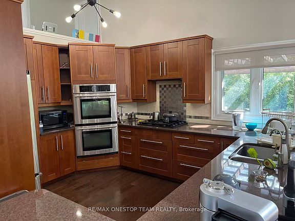 This beautiful residence boasts exceptional curb appeal with flagstone steps, a welcoming front porch, and lush, professionally landscaped grounds. Inside, the open-concept chefs kitchen offers abundant cabinetry, generous counter space, and top-of-the-line appliances perfect for everyday living and entertaining. The spacious family room features a walkout to a two-tier deck and covered veranda, extending your living space outdoors. Updated bathrooms add a touch of modern luxury, while the primary bedroom offers a wall-to-wall closet for ample storage. Additional highlights include an oversized laundry room, a versatile recreation area, and direct access from the double car garage. Ideally located near Owen Public School, top-rated schools, Bayview Village shopping, and just 5 minutes to Hwy 401 and the subway. Please notes exterior pictures of the property and interior staged pictures were taken in 2022 to reflect a similar condition of the house with expected normal wear and tear.