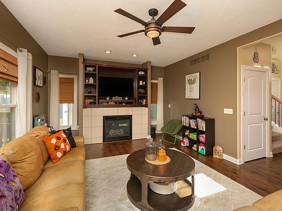 Gas fireplaceFormal dining roomFinished lower levelLarge rec roomGame areaSump pumpStylish eat-in kitchen