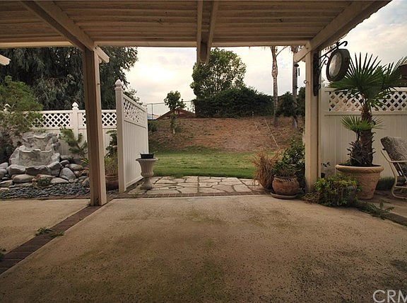 Phillips Ranch one story with no interior steps up or down. The spacious lot is mostly flat w/ a peek a boo hills view from the back yard. Nice curb appeal and a quiet location away from the freeways. The entry opens to the living room w/ vaulted ceilings extending through the dining & family rooms. Center island kitchen is remodeled with granite counters, recessed kitchen lighting and newer Samsung 5 burner gas stove and oven, dishwasher, built in microwave- all in stainless steel. Stainless steel sink with views to the back yard. Family room is open to the kitchen and boasts a brick fireplace and ceiling fan along with a convenient sliding door to the back yard. The back yard has 2 white vinyl privacy fences: one off the main covered patio at the family room slider, the other from the master bedroom sliding door. Enjoy the rock waterfall fountain. Vaulted ceilings in the master suite, mirrored closet doors, ceiling fan, twin sinks, and tiled shower stall. Two additional bedrooms with a hallway bathroom. Indoor laundry room, attached two car garage with fold down ladder to attic storage, thermostatically controlled attic fan to keep cooling costs down. Upgraded ac compressor. Award winning schools shared w/ N. Diamond Bar. Nearby shopping.