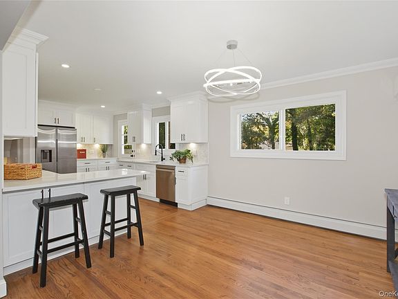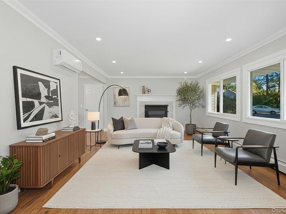 This Stylishly Designed and newly renovated home is your Escape and Sanctuary! Perfectly situated on a spacious 1/3 acre park-like property within the desirable Huntington School District. Fully paid for solar panels gives you free electricity! Come inside and discover newly finished hardwood floors flowing throughout. The brand new kitchen features white shaker cabinets, quartz countertops & herringbone marble backsplash. Also on the main level is the dining room and a welcoming living room anchored by a cozy fireplace. Travel upstairs to where you will find another beautifully renovated full bathroom and two more bedrooms- one even has a private full bath. The top floor is where you will find the primary suite, complete with a private full bathroom and extra space where you can set up a home office, use it as a dressing area or even a place to sit and relax as you unwind from your day. The lower level has a mudroom, full bath, fourth bedroom or bonus room and laundry room. Brand-new air conditioning & heating system, new roof & new windows! The exterior is an entertainer’s dream, boasting a fully restored inground pool with new liner and new filter/pump. The property includes a convenient two-car garage with an attached workshop/storage area. Discover a variety of shopping and dining options in nearby Huntington Village. This home completes your wish list!