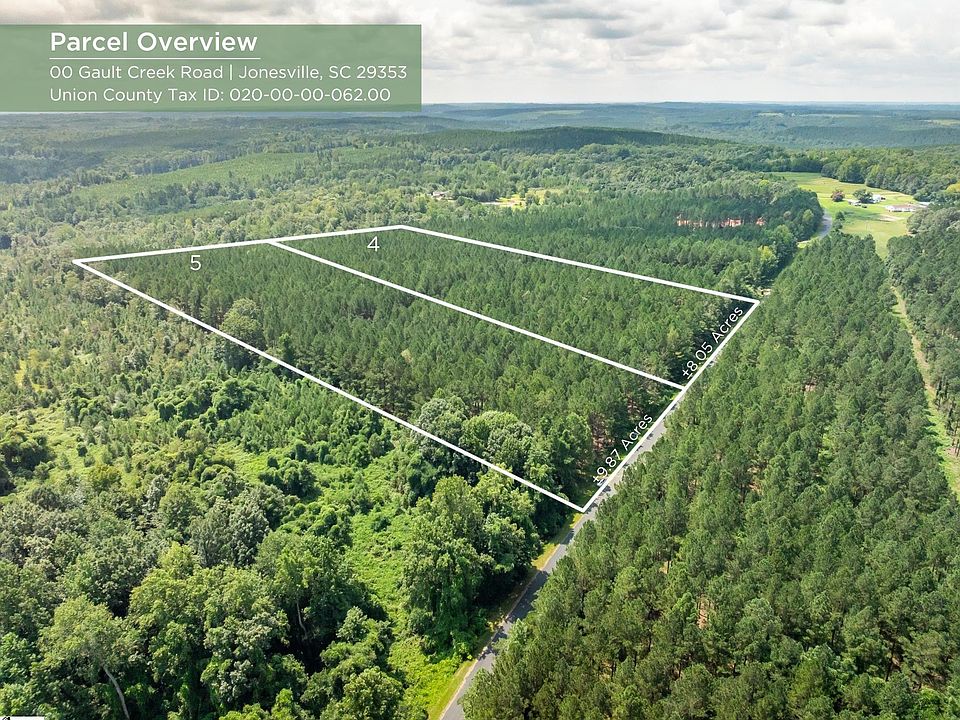 Looking for a peaceful, spacious homesite with flexibility? These two homesites on Gault Creek Road in Jonesville, SC, are just what you need. With plenty of road frontage, you've got easy access and several options for placing your home. Plus, these lots are unzoned. So, whether you're planning to build, bring in a mobile home, or just enjoy the land, you’ve got the freedom to make it your own.  Located just 13 minutes from Jonesville, 19 minutes from Union, and about 37 minutes from Spartanburg, this property offers the perfect balance of privacy and accessibility. If you're looking for a place to put down roots with room to spread out, call us today to schedule a private showing.  Additional Information:  • Union County Tax Map Number: 020-00-00-062.000  • Zoning: Unzoned  • Best Possible Property Use: Homesites  • Road Frontage: ± 1,570 feet on Gault Creek Road  • ± 13 minutes from Jonesville • ± 19 minutes from Union • ± 37 minutes from Spartanburg  **Acreage and utility to be verified by Buyer and/or Buyer’s Agent.