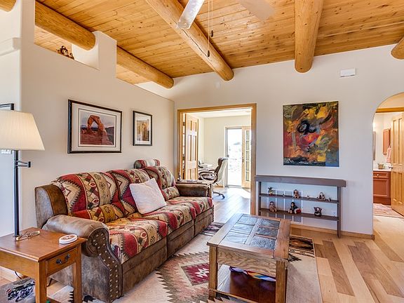 Home Sweet Home. Those words were truly made for this gem! This cozy single level home is packed with charm and style. From the newly painted interior to the new hickory wood floors you know this home is a winner! Kiva fireplace, Vigas, Newly updated master bath, new light fixtures and ceiling fans, evaporative Air Conditioning, new window shades, granite counter tops, new appliances including washer and dryer, new xerioscaped fenced yard, newly insulated and finished garage and VIEWS! There is Real Value here and this gem won t last! Hurry before its gone! Sellers offering all furniture for only $5,500.00 for a move in ready home! Eldorado Community features miles of walking and bike trails, 4,000 acres wilderness preserve, community center, outdoor swimming pool, dog parks, shopping, dining, Library, Senior Center, and awarding winning K-9 school yet 20 minutes to the Santa Fe Plaza! Choice!
