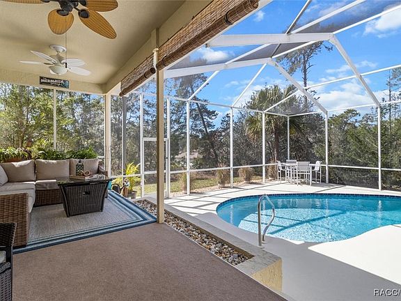 Discover this beautifully maintained 3-bedroom, 2-bathroom pool home in the sought-after Oak Village of Sugarmill Woods! Designed for privacy and comfort, the split floor plan features a spacious owner’s suite with a large walk-in shower and ensuite bath.
