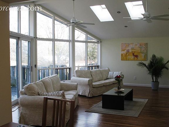 Serene locale at end of cul-de-sac on treelined .40 acre sits a window walled fully updated Contemporary ideal for family and friends use. Upper living area offers new modern kitchen with glass tile and center island. Open to Cathedral living & dining room which flow to full length decking. Two bedrooms, two baths complete upper floor. Lower level boasts sunny den, 2 addtional bedrooms, and 2 bathrooms. Cac, oil heat, and secluded yard make this one of Montauk's best values now! Be in for summer and everafter!!