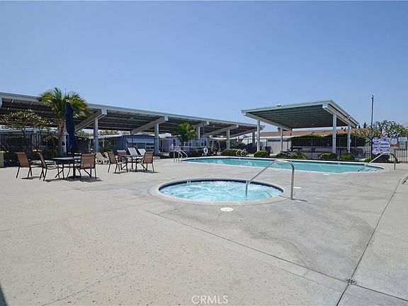 Absolutely STUNNING well priced immaculately maintained manufactured dream home conveniently located in central Orange County close to everywhere you need to be. This home has a spacious enclosed back yard. The 3rd bedroom has a private split door entrance that has a built-in doggie door in the bottom. There is 1 spacious shed included. The carport can fit 3-4 cars depending on the size. This home even has an avocado tree in the side yard. There is a large TV antenna that can save you from the cost of cable TV included. This home features coffered ceilings in the family room and the master bedrooms. The community features a clubhouse with a full kitchen and fireplace, swimming pool, spa, saunas, BBQ area, fire-pit, dog walking park, laundry mat, honor system library and a billiards room for resident use with their guests. The lot lease is $1,675 monthly. This is an amazing all age community with pride of ownership and to be sold as a residence for the new owner. Your amazing new home has found you. Come home already!