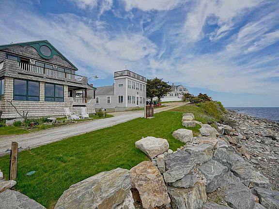 Extraordinary seaside retreat perched high above the Atlantic Ocean on iconic Great Boars Head bluff. Steps from the water, yet not in a high-risk flood zone, with unobstructed, sweeping views from Hampton Beach to Rockport, Massachusetts. The property is sited on a private lane in a quiet neighborhood, offering a rare blend of serenity and convenience. You’ll enjoy front-row seats to dazzling summer fireworks and the ever-changing drama of the sea…close to the energy and attractions of the beach yet blissfully removed from the crowds. Rebuilt from the ground up c.2001, the residence evokes the warm, refined ambiance of a classic yacht with custom woodwork, gleaming floors, and clever built-ins. The open-concept main living area and upstairs primary bedroom are graced with walls of oversized windows to maximize water views. A ‘small but mighty’ kitchen includes a Viking gas range, exhaust hood, pot filler faucet, stainless steel refrigerator, farmhouse sink, and granite island. With 1,878 SF of space, the floor plan was designed to suit the owners’ living and work-from-home needs, while accommodating guests with flexibility and ease. Outdoor living is equally inspired: covered porch, front and back decks, gardening spaces (with shed), private waterfront lawn (with irrigation), and enclosed outdoor shower. Updated heating system (with new cast iron boiler), and mini split for cooling. Unique opportunity to embrace coastal living, right at the water's edge!