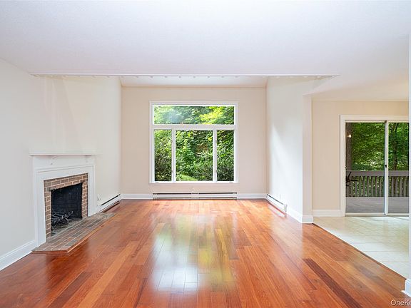 All the space and privacy of a single-family home with the ease of condo living! One of the few completely stand-alone and private townhouses in Apple Hill Farm, this spacious 2-bedroom, 2.5-bath home offers a rare blend of comfort, style, and convenience. Enjoy the serene setting from a large wrap-around wood deck overlooking lush, wooded views—perfect for morning coffee or evening entertaining. Inside, the sunny living room features a cozy wood-burning fireplace, oversized windows, and flows seamlessly into the formal dining area with sliding glass doors to the deck. The updated kitchen boasts custom cabinetry, brand-new stainless steel appliances, and its own access to the deck ideal for grilling or gatherings. All bathrooms have been newly and tastefully renovated with quartz vanities and striking tile flooring, bringing a luxurious feel throughout. Additional highlights include wood floors throughout, many new windows, a new roof and skylights (2019), and a new driveway and cul-de-sac (2019). Storage is plentiful with large closets, a pull-down attic, crawl space, and an attached garage. Apple Hill Farm is a private, tranquil community offering a pool and tennis courts, all just minutes from town, train, and top-rated Chappaqua schools. This move-in-ready home offers it all—privacy, space, and low-maintenance living in a coveted location.