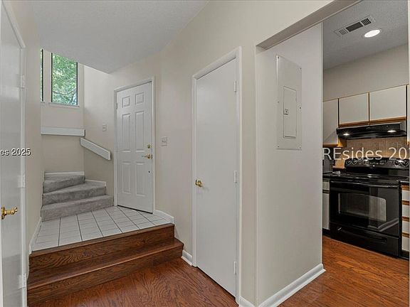 Welcome to Marsh Side Community! This spacious 2 bedroom, 2.5 bath two-story condo offers comfort, convenience, and Lowcountry charm in a well-maintained community. Built on a slab foundation, this home avoids the common concerns of subfloor issues and provides lasting peace of mind. The inviting living room features hardwood flooring and a cozy wood-burning fireplace, creating a warm atmosphere for year-round enjoyment. Step outside to your private back patio with serene lagoon views, perfect for relaxing or entertaining in a quiet, natural setting. Upstairs, two generously sized bedrooms provide comfort and privacy, making this an ideal primary residence, vacation getaway, or rental property. Recent improvements include a 3-year-old HVAC system, offering efficiency and reliability. The pet-friendly community boasts excellent amenities: large pool, hot tub, tennis courts, fitness center, playground, and BBQ area. An on-site HOA office with dedicated maintenance staff ensures the property and grounds are consistently well cared for. Located just minutes from the Cross Island Parkway, shopping, dining, and all that Hilton Head Island has to offer, Marsh Side is a community known for its convenience and welcoming atmosphere. Unit E-15 combines convenience, natural beauty, and strong amenities into a package that is hard to beat