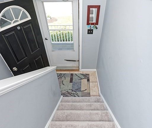 OFFER DEADLINE 5/15 5PM. Let's talk about your new house: First, it's in a sought-after neighborhood. Second, fresh paint and new carpet mean move right in! When you walk up a few steps, you are welcomed by an airy living room that opens into the dining area and kitchen. If you like to entertain, the flow is seamless and with a slider to the deck, grilling and dining al fresco are even more enjoyable. The primary bedroom has a half bathroom en suite and also houses a small walk-in closet. You'll also find two adjacent and good-sized bedrooms. Rounding off your first floor is a coat closet, pantry/utility closet, and full bathroom. Now, let's discuss the lower level: it is all framed, all wired, and also plumbed for another full bathroom. Vapor barrier, most insulation and subflooring down. We have the plans for the family room, dry bar, plus the bathroom, laundry, and workshop rooms: all you need is drywall and paint. The garage is also on this level and offers even more storage.