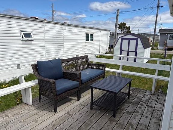 Are you looking for a small home with everything on one level, just minutes from the beach, golf course, shopping and church? This home is a two bedroom, 1 bath mobile home on leased land at the edge of Stephenville. It comes with a fridge, stove, washer and dryer. There is a storage shed on the property for your lawn mower, spare tires, patio furniture etc. There is a deck on the house with a bench style seat, great for having friends over. This mobile home has vinyl siding, window and doors, plus a peak style roof with new asphalt shingles. It has a new oil tank and new flooring in the bathroom. There is a spacious bathroom with a jetted tub and lots of storage. At this price point, it will not last long, so call today for your personal viewing.