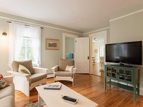Welcome to historic 1880 Kingsbury Cottage in the quiet seaside town of York Harbor, Maine. This completely furnished & stunning 2 bedroom/2 full bathroom condo in a sunny-yellow painted cottage beautifully blends modern renovations and original Victorian era charm. Enjoy seasonal views of the harbor or breathe the fresh sea air from the the crisp white eat-in kitchen or inviting 4 season classic sun porch. You will be delighted at every turn in this light filled cottage by the pristine wood floors, vintage lighting and bath fixtures, original woodwork, and impeccable seaside palettes. Pass leisure time or BBQ in the serene side garden area or walk out your front door to shops, cafes, Harbor Beach, Wiggly Bridge, Steadman Woods, Fisherman's Walk or the Cliff Walk. Includes 2 parking spots. Earn income from rentals while enjoying it or live full time in the vibrant York's area. Own a piece of history! You must see this very well cared for home.