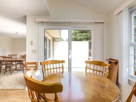 Welcome to 5 Harrington Farms, a stunning condominium nestled in the desirable Harrington Farms. This meticulously maintained property offers the perfect blend of comfort, elegance, and modern convenience. You'll be greeted by a grand cathedral foyer leading to an inviting living room featuring a fireplace and custom built in shelves for cozy gatherings. The eat-in kitchen is a chef's dream, boasting newer appliances, and ample cabinets with slider access to a large private deck. A spacious dining area, perfect for everyday meals and entertaining guests abuts the kitchen. Upstairs, you'll find a luxurious master suite complete with dressing area and attached bathroom. A second bedroom and full bathroom complete the upstairs. The finished basement provides additional living space that includes a family room, bedroom/office and exercise room with a hot tub included. The expansive garage is upgraded with epoxy flooring & cabinets. Some photos virtually staged.