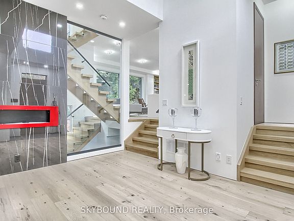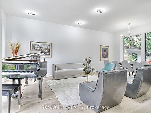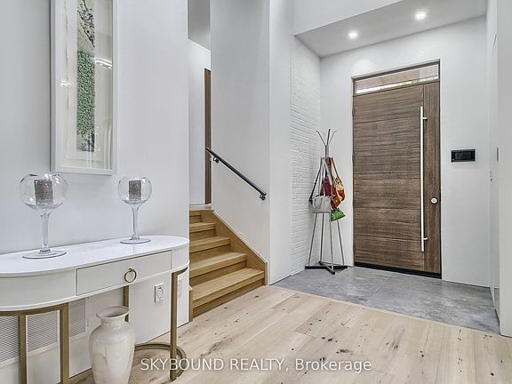 Nestled in the heart of the city, this custom-built home is a true architectural marvel, designed to harmonize indoor elegance with the natural beauty of the outdoors.Step into the breathtaking backyard, where multi-level cascading landscaping sets the stage for relaxation and entertainment. A 17x14 ft gazebo, outdoor benches, and a mini golf area make this an outdoor haven, complete with a multi-zone sprinkler system for easy maintenance. Outdoor pool is the built-in endless swim spa, a 20x8-foot aquatic oasis perfect for relaxation and fitness. Inside, the home is defined by its soaring ceiling heights, creating an open and inviting atmosphere. Floor-to-ceiling high-efficiency aluminum windows (tempered glass, factory-built in Canada) frame the walls, immersing every moment in stunning natural scenery.The property offers an extensive driveway for six cars, newer gate & fence. A 22-ft height garage provides the possibility for a car lift and features a pull-down ladder leading to a mezzanine for additional storage. Fiberglass exterior doors with multi-locks ensure security, while natural wood-stained interior doors are soundproofed for privacy.The interior is a masterpiece of craftsmanship and design, featuring 7.5-inch engineered hardwood white oak planks throughout, open-raised natural white oak stairs (2-3/4 inches thick), and a designer eco-fireplace. A built-in lower-level wine cellar adds a touch of sophistication. Glass railings (12 mm tempered glass) with metal handles enhance the contemporary aesthetic while maintaining unobstructed views. Chefs kitchen is a true showstopper, featuring pearlescent cabinetry, white quartz waterfall countertops, and an oversized eat-in island. High-end Bosch appliances include an induction cooktop with a sleek, integrated pull-out hood range, as well as built-in paneled appliances. A 24-inch counter-depth Fisher & Paykel refrigerator completes the space. A 2nd kitchenette provides additional convenience and pantry space.