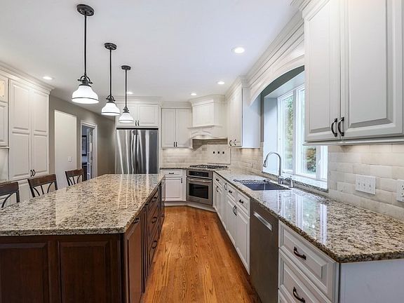 - Features: Closet/Cabinets - Custom Built, Flooring - Hardwood, Window(s) - Bay/Bow/Box, Dining Area, Countertops - Stone/Granite/Solid, Kitchen Island, Deck - Exterior, Exterior Access, Open Floorplan, Recessed Lighting, Remodeled, Stainless Steel Appliances, Gas Stove, Lighting - Pendant