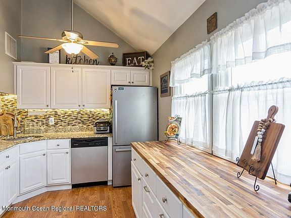 Welcome to this beautifully renovated split-level home in Union Beach, absolutely move-in ready! Newer roof, siding, windows, furnace, central AC & heat. Brand new hot water heater, washer and dryer. Tile kitchen backsplash, updated cabinets, granite counter tops and a butcher block topped island. Stainless steel refrigerator, dishwasher, and oven with attractive laminate flooring throughout. Kitchen & dining room are freshly painted and feature a vaulted ceiling. Front-to-back split offers a living room with French doors leading to a large patio, fenced rear yard with a firepit and custom shed (roughed for electrical). Direct entry one-car garage and double-wide driveway complete the picture for this lovely home, 1.3 mi to UB waterfront