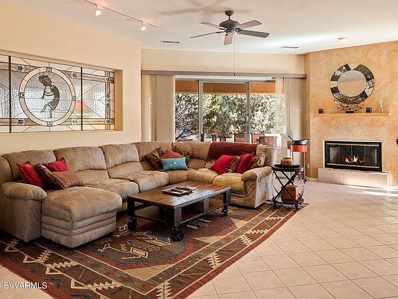 Feel at home in this charming 2-bedroom 2-bathroom + office southwestern/cowgirl sanctuary located in the acclaimed Sedona Golf Resort in the Village of Oak Creek, minutes from the famous landmarks of Sedona.This beautiful 2,052 square-foot southwestern gem boasts an open-concept layout with a split bedroom plan and stunning southwestern decor, local artwork and designer touches throughout. Newly updated, no detail was overlooked in this stunning Sedona golf retreat. Panoramic windows invite light into the great room with top-up/bottom-down shades and a cozy fireplace to keep you warm in the winter months. The open kitchen boasts lots of cabinet space, stunning granite countertops that echo Sedona's brilliant reds, greens, and copper, high-end appliances, and generous amenities that ma cooking a breeze.