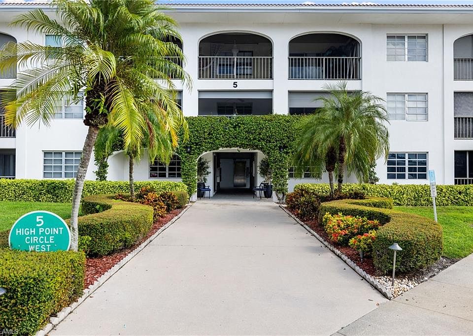 Discover the charm and convenience of this cozy condo located at 5 High Point Circle West, Unit 307, in the highly desirable High Point Country Club of Naples, FL. This abode offers a unique opportunity to enjoy the best of Florida living with golf included in the low HOA fees—golf for free! Step inside to find a bright and airy space featuring brand new appliances, new hurricane windows, and storm smart screens for peace of mind. The washer and dryer convey with the sale, adding to the home's convenience. The community boasts an array of amenities, including six heated pools, tennis courts, bocce ball, pickleball, an exercise room, and a café open for breakfast and lunch. Whether you're winding down by the pool or enjoying a game, there's something for everyone. Perfectly located just a mile from the beach and close to shopping and dining options, this condo is in a building that welcomes a diverse range of residents without age restrictions. Enjoy the flexibility of rental options up to six times a year with a 30-day minimum stay. Don’t miss the chance to make this your home base in a vibrant area where convenience meets leisure.