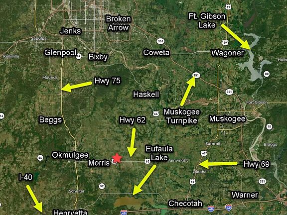 IMPECCABLE 30+/- ACRES IN MORRIS OFF BLACKTOP ROAD! The perfect place to lay down roots and create the homestead of your dreams! Enjoy peaceful living on this sprawling acreage ideally setup for the landowner that loves to hunt or just wants seclusion and privacy. Over 200 dove killed off this property and the surrounding parcels this season. Being just a short 45-minute drive from of Tulsa, this remarkable property offers the perfect blend of convenience and tranquility, making it an ideal retreat, with a large pond that frequently hosts waterfowl! This property is an excellent blank canvas to put your personal touch on and design the home you've always wanted. Whether you envision a charming farmhouse, a modern retreat, or a rustic cabin, the stunning backdrop of rolling hills and lush greenery provides an idyllic setting to bring your vision to life. With frontage on Hwy 62, less than 10 miles from Hwy 75, and a short 45-minute trip to Tulsa, this convenient location provides you the peacefulness of country living, while still offering amenities like Starbucks, Walmart, Lowes, outlet malls and more just a short drive away. Don't miss this amazing opportunity! Call today! Agent is partial owner.