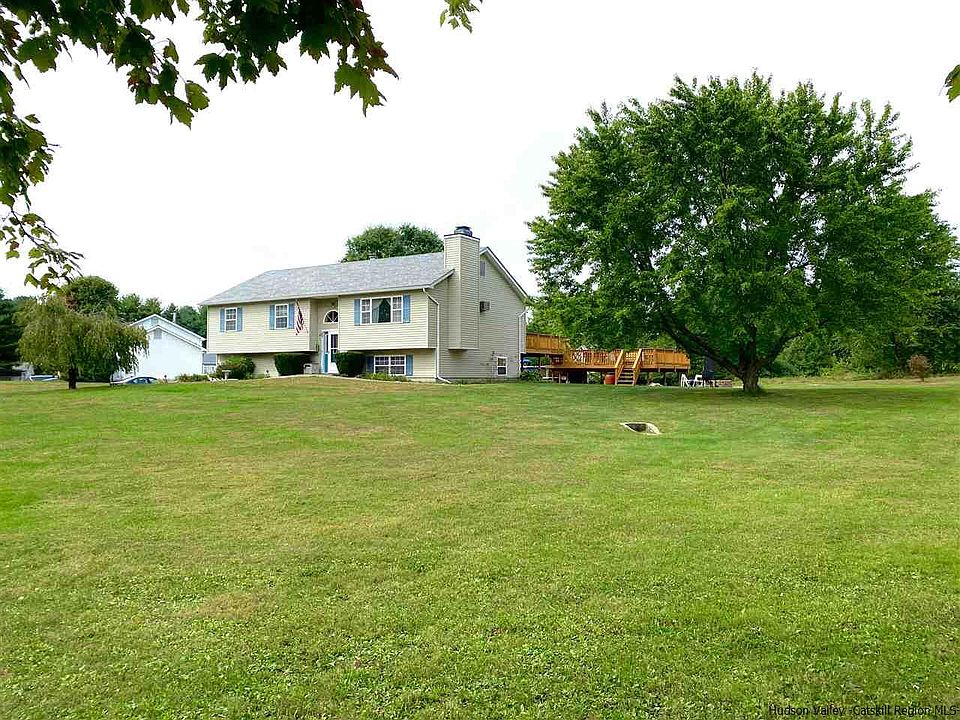 WALLKILL SCHOOLS. Disappear in your own oasis with this Bilevel on 1.4 serene parklike acres! This beautifully landscaped home is on a quiet dead end road. Social distancing? No problem on the 2 tier decks, a 10 x 10 and a 20x 20, that attaches to the 18 x 33 above ground pool is the perfect place to relax or entertain! Plenty of space for everyone. 2013 many upgrades were made, new architectural shingle roof, coal heater & oil boiler and new pool liner. 2020 new gutters were put on. 60 gallon twin cylinder air compressor in garage stays! Video cameras through out the house, some need to be replaced. The home boasts a master bedroom with bath and 2 additional spacious bedrooms. The large living room with picture window has a wood fireplace for those cold days to watch the snow fall while being nice and toasty. The downstairs family room has its own half bath and a separate laundry room. The attic insulation has been upgraded. This house was made to enjoy life with all landscaping created to be low maintenance. Privacy but close to Angry Orchards, Shawangunk Mountains, the Rail Trail, and to major highways, shopping and local fare.