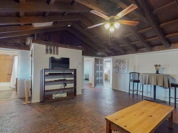 Separate studyThick adobe wallsBrick floorsDual closet spaceHuge shade treesVaulted ceiling