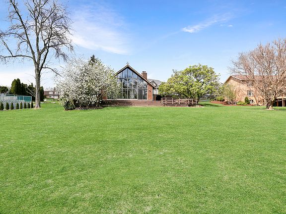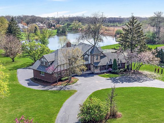 Stunning, one-of-a-kind custom home and property in coveted Equestrian Estates is nestled on picturesque, 1+ acre lot set on a serene pond. The impressive curb appeal draws you to this home, where distinctive architectural features grace both the exterior and interior. Elegant porte-cochere connecting the garage and home, allowing for convenient drive-through access. Enjoy year-round swimming, entertaining, and breathtaking sunset views from the stunning indoor pool area, which offers a picturesque overlook of the resort-style grounds. The expansive 1,400 sq. ft. pool room showcases soaring ceilings and floor-to-ceiling windows that frame panoramic views of the surrounding landscape. Step into the welcoming foyer highlighted by a grand, curved oak staircase that leads into the main living spaces. Comfortable living room features crown molding, hardwood floors and pocket doors leading to the family room. The stunning chef's kitchen boasts abundant cherry wood cabinetry, a spacious island, high-end stainless-steel appliances and a walk-in pantry. The distinct dining area adjacent to the kitchen comfortably accommodates a large table and includes charming wainscoting and a newer, modern light fixture. The warm and inviting multi-functional family/game room features beamed ceilings, a charming brick fireplace, and direct access to the indoor pool. The expansive primary bedroom suite features a cozy sitting area and a private balcony with views of the pool-perfect for enjoying your morning coffee. A luxurious double-sided fireplace adds warmth and ambiance, while elegant French doors open to a spa-inspired bathroom.The en-suite bath offers a jetted tub, separate shower, dual vanity sinks, a cozy fireplace, and an oversized walk-in closet with custom built-ins. 3 impressive sized second floor bedrooms include walk-in closets, providing plenty of storage. A beautifully updated hall bath and the second floor laundry room add modern convenience. The full finished basement offers a large second family room, kitchen area, a full bath and great storage including a cedar closet. The indoor pool room showcases cathedral, wood ceilings, oversized skylights, its own dedicated heating system, and is encircled by eight sets of sliding glass doors that open onto the expansive wraparound decks-perfect for seamless indoor-outdoor living. Convenient full bathroom with a steam shower is adjacent to the pool room. Ideal for outdoor enthusiasts, this location offers opportunities for fishing, kayaking, and a variety of other outdoor activities. Newer HVAC system installed on the main level (2020), hot water heater, water softener and pool heater (2023), pool pump (2025), carpet in 3 bedrooms and vinyl floors in basement (2021), Frigidaire Professional grade built-in oven and Frigidaire Gallery dishwasher (2023). Huge horseshoe-shaped asphalt driveway leading to the rear of the home (resurfaced in 2024) and a 2.5 car heated garage provide ample parking. Whole house water conditioning system. Conveniently located near shopping, dining, expressways, golf courses, and several parks-including the Lemont Forge Adventure Park. Located within the highly acclaimed, nationally recognized Blue Ribbon Lemont High School district.